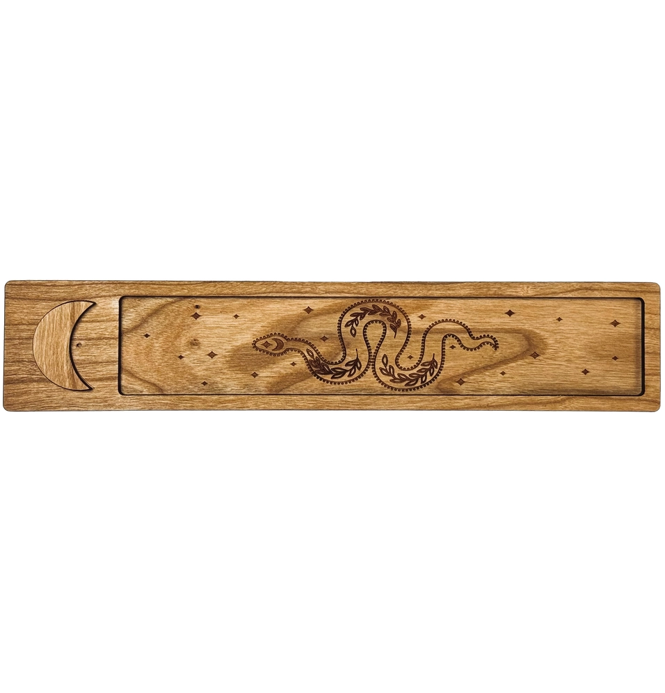 Imbue your space with serenity and style using our Cherry Wood Snake Incense Holder. Crafted from exquisite cherry wood and laser engraved with a captivating Snake pattern, this 10x2 inch burner is both functional and visually striking.