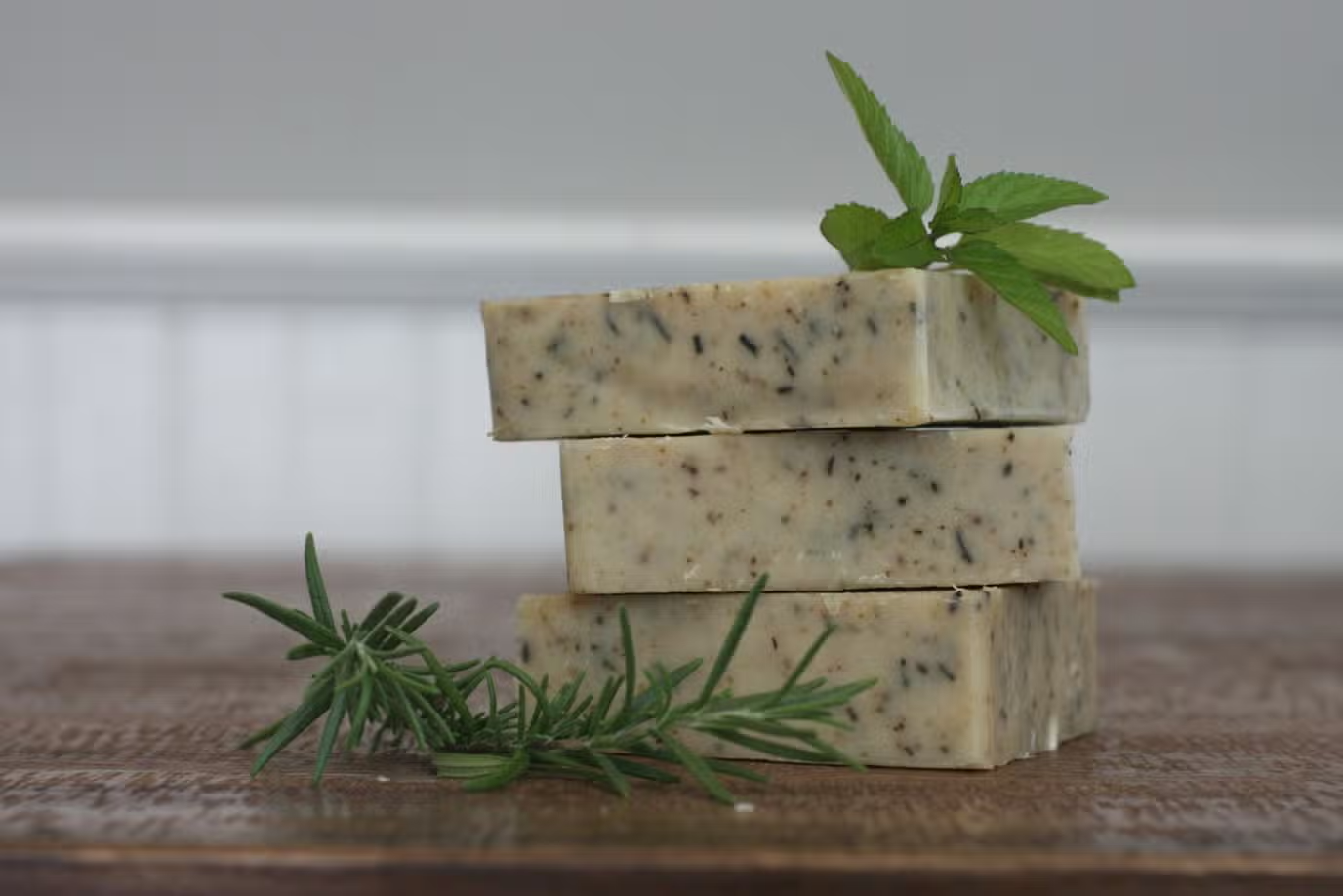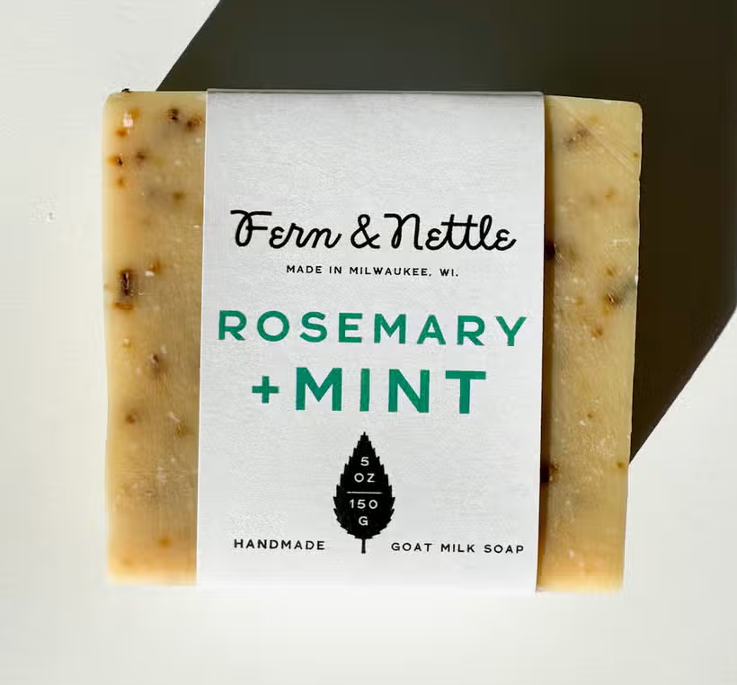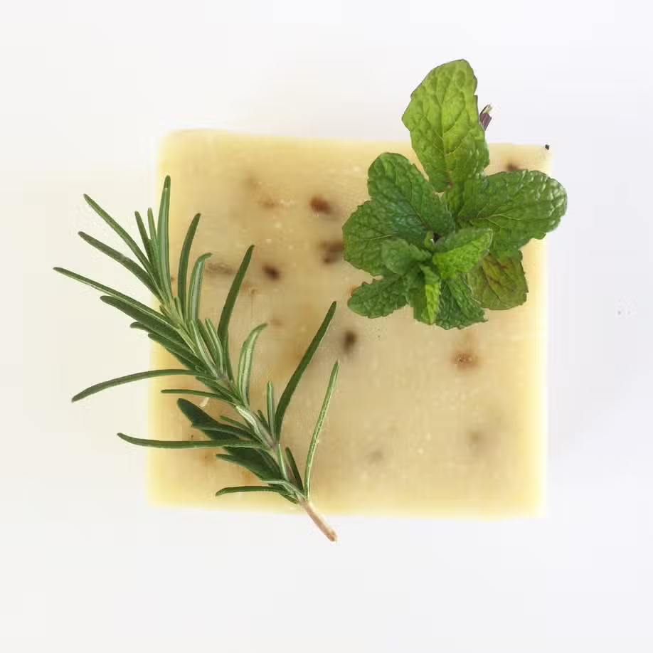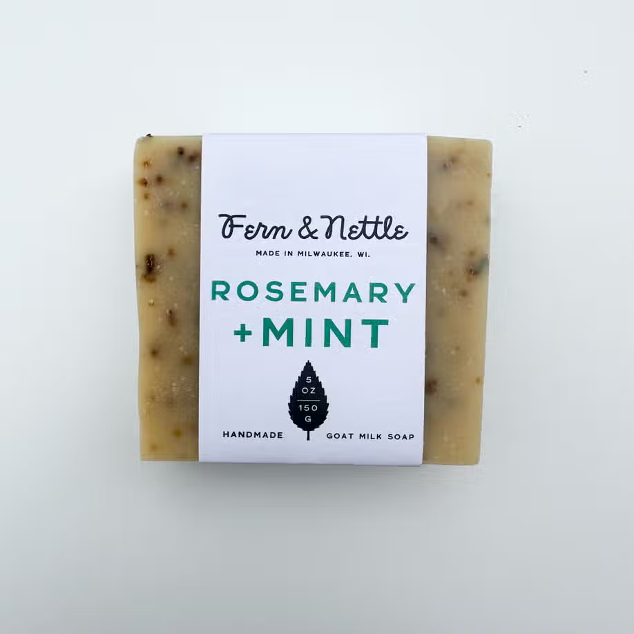 Rosemary is long considered a symbol of love, and considered sacred by the ancient Greek, Roman, Egyptian, and Hebrew cultures for centuries. A blend of rosemary and peppermint in this skin-soothing goat milk soap will awaken your senses and prepare you for the day. Ground pieces of organic rosemary leaves help to exfoliate the skin.