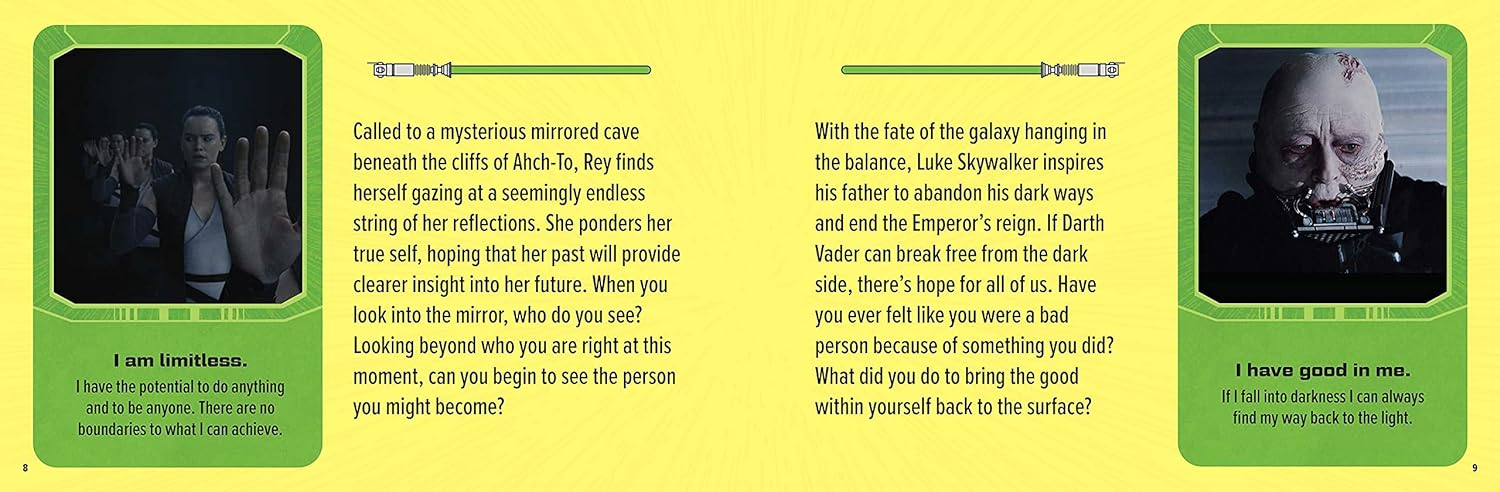 Star Wars Affirmations features a collection of inspirational and philosophical cards focused on mindfulness, inner strength, and positive thinking for all aspiring Jedi.