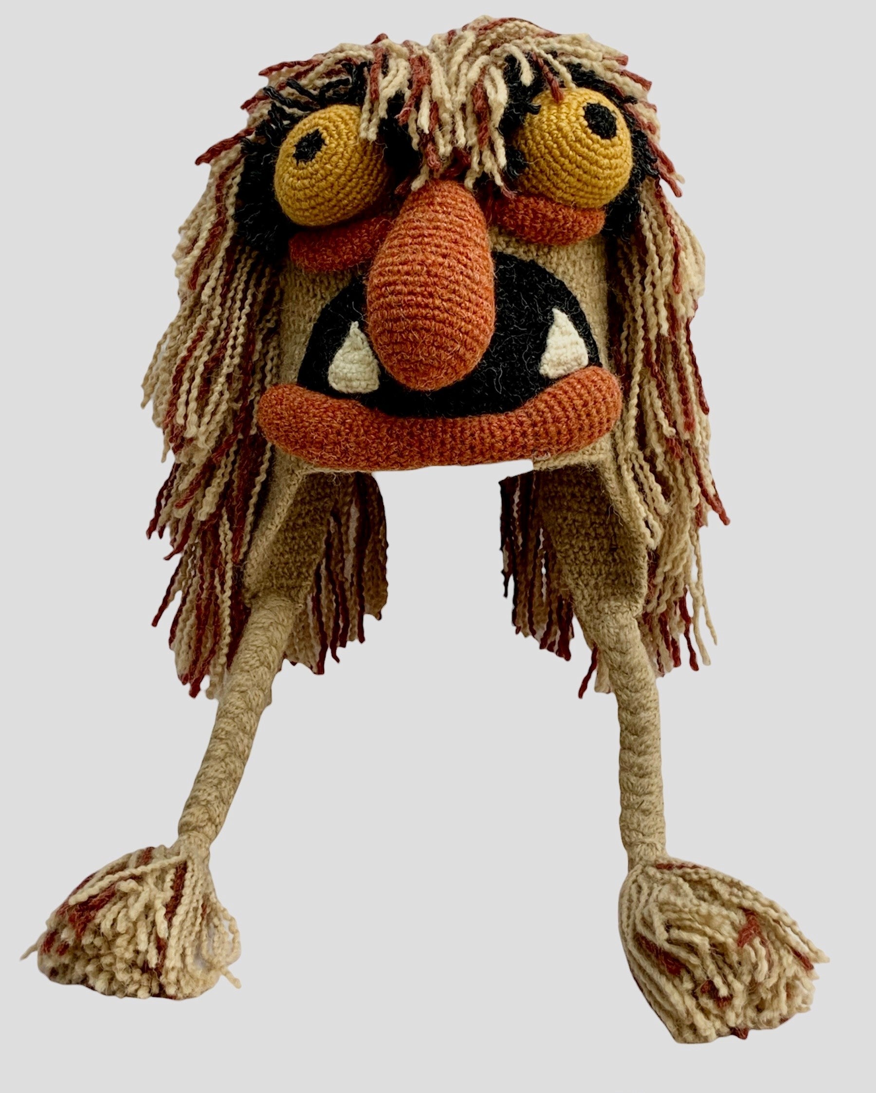Hand Crochet Whimsical and Outrageous designs screams fun as loud as the personality that wears them. 100% Faux Alpaca Hypoallergenic Acrylic.