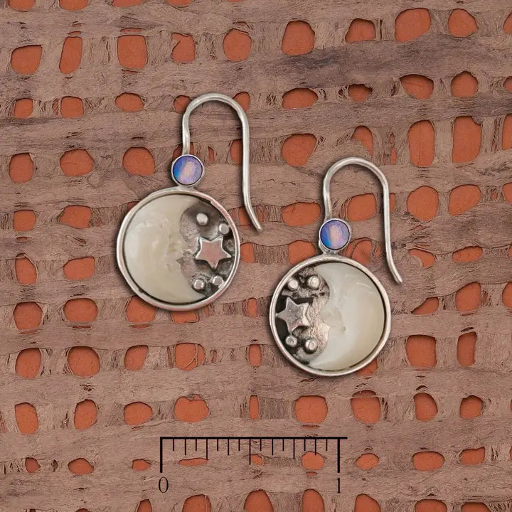 Tagua Half Moon Face Earrings with Star Moonstone L1103