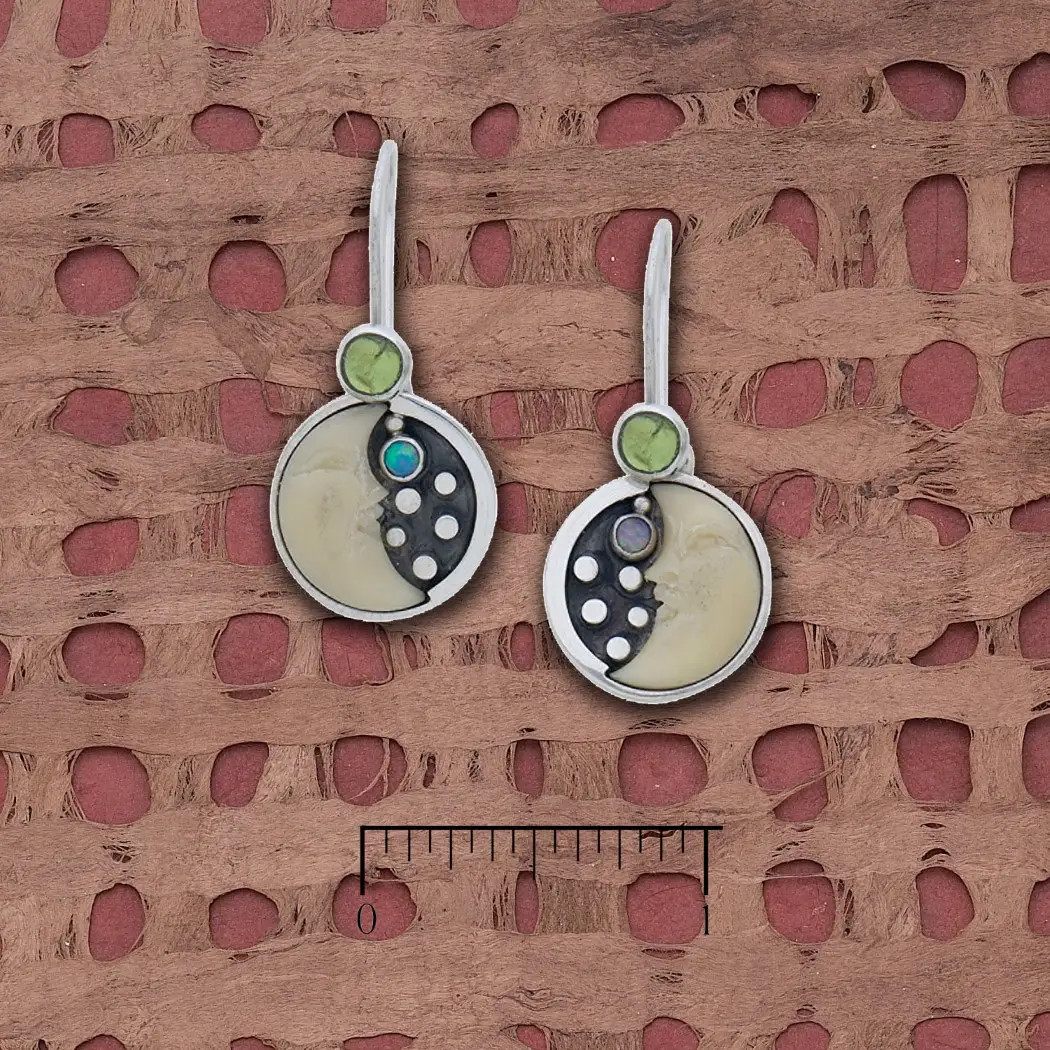 Tagua Half Moon with Star Peridot + Opal Earrings