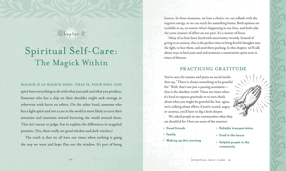 This in-depth guide helps you harness nature’s magick to soothe and calm your body and soul. Topics include giving your life a magickal spring clean—from cleansing your aura and chakras to smudging away negative energies; casting spells for harmony, good sleep, and protection; blending magickal herbs to use in rituals, with an A–Z directory of herbs and flowers; potions, lotions, and oils to pamper the soul and promote self-love; magickal affirmations for your beauty routine; spiritual self-care, from practicing gratitude to calming your senses with aromatherapy; magickal meditation; and house and garden magick to create a peaceful home environment.