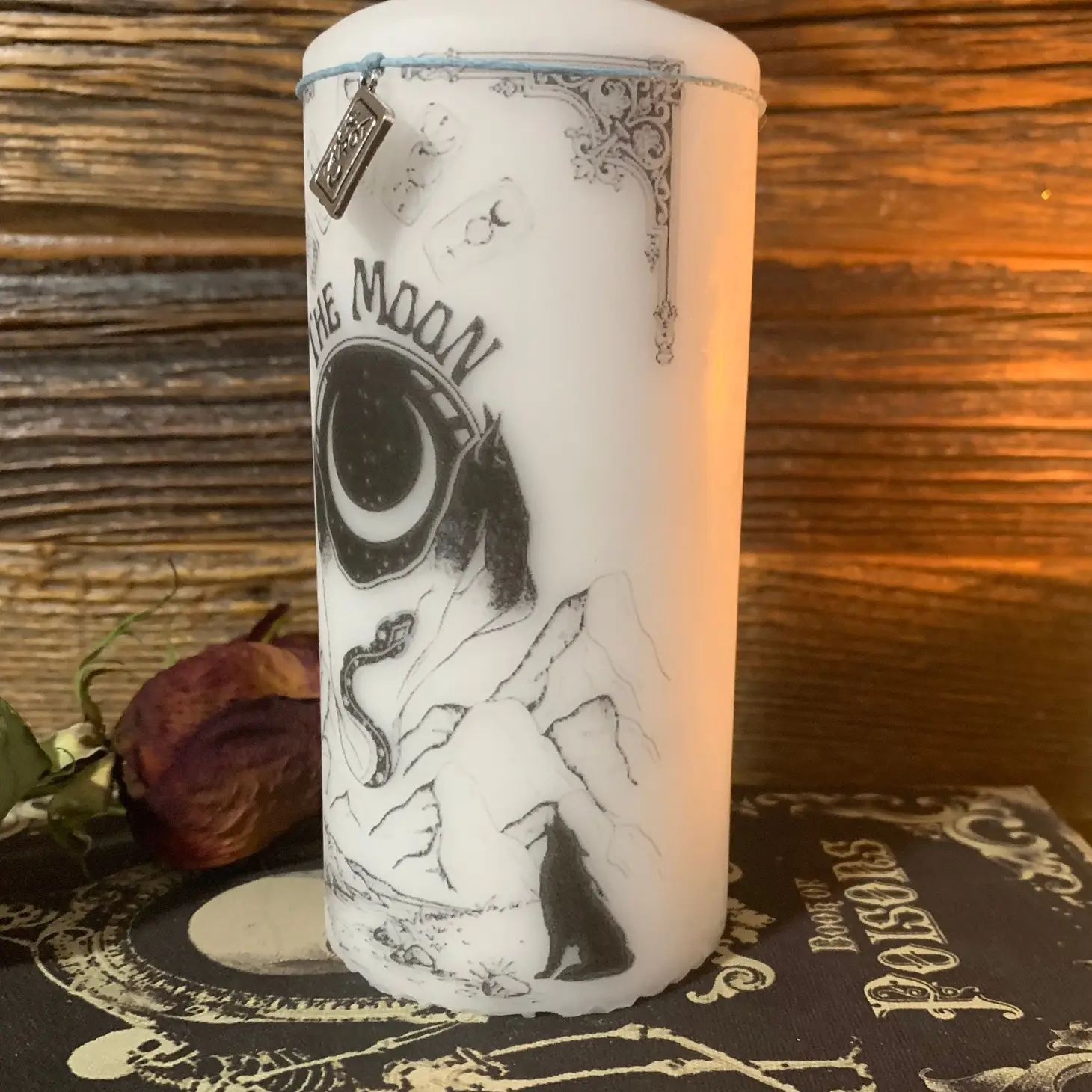 Each candle burns for 60+ hours, and is made with paraffin wax. 3 inches wide 6 inches tall. Candle should not burn for more than 2 hours. Outside wax of the candle may need to be trimmed as the centre of the candle burns down.