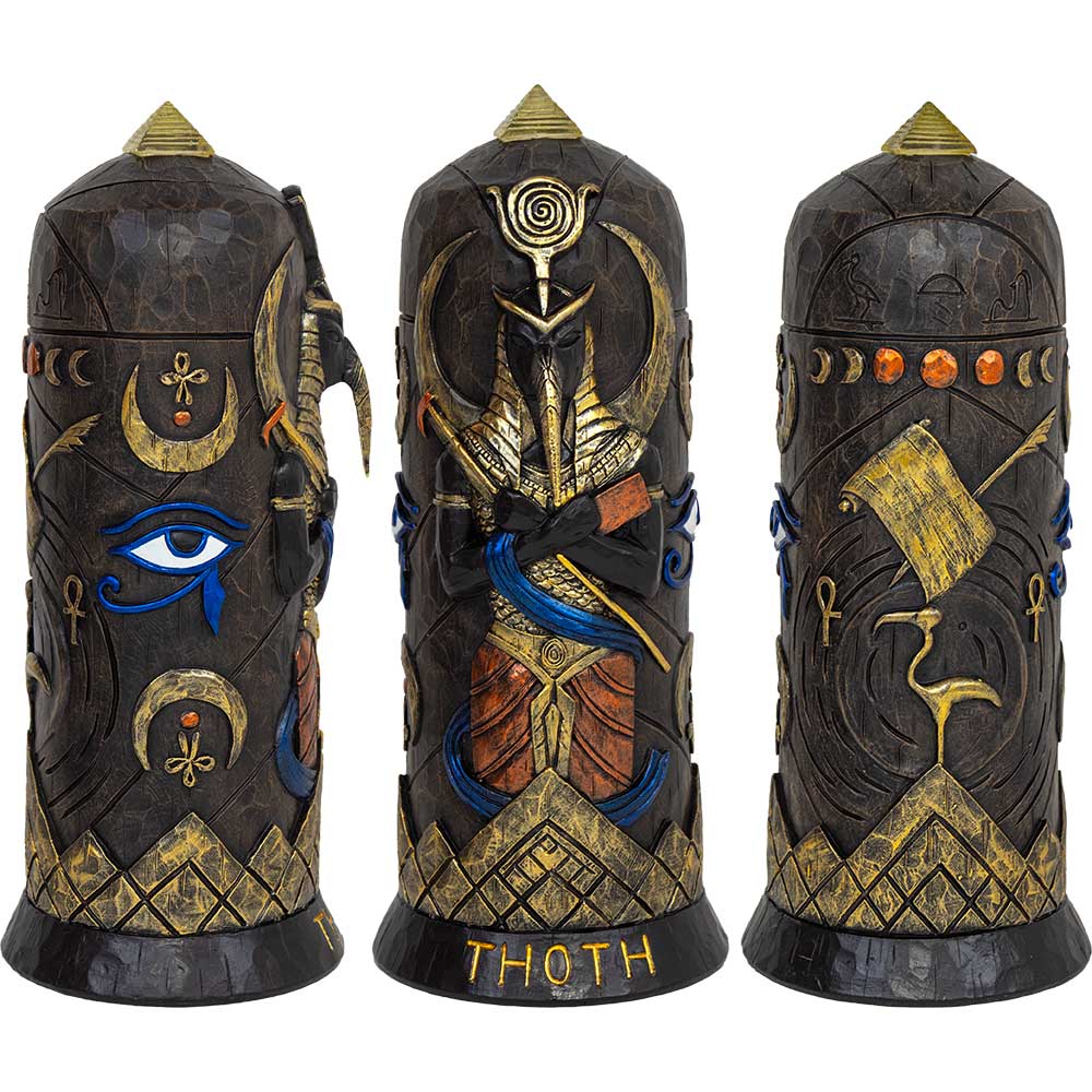 Thoth is the Egyptian God of Wisdom, Writing and Magic. Place this Polyresin LED Statue in your library or office to bring in his powers of knowledge. Takes 2 AA batteries, not included.