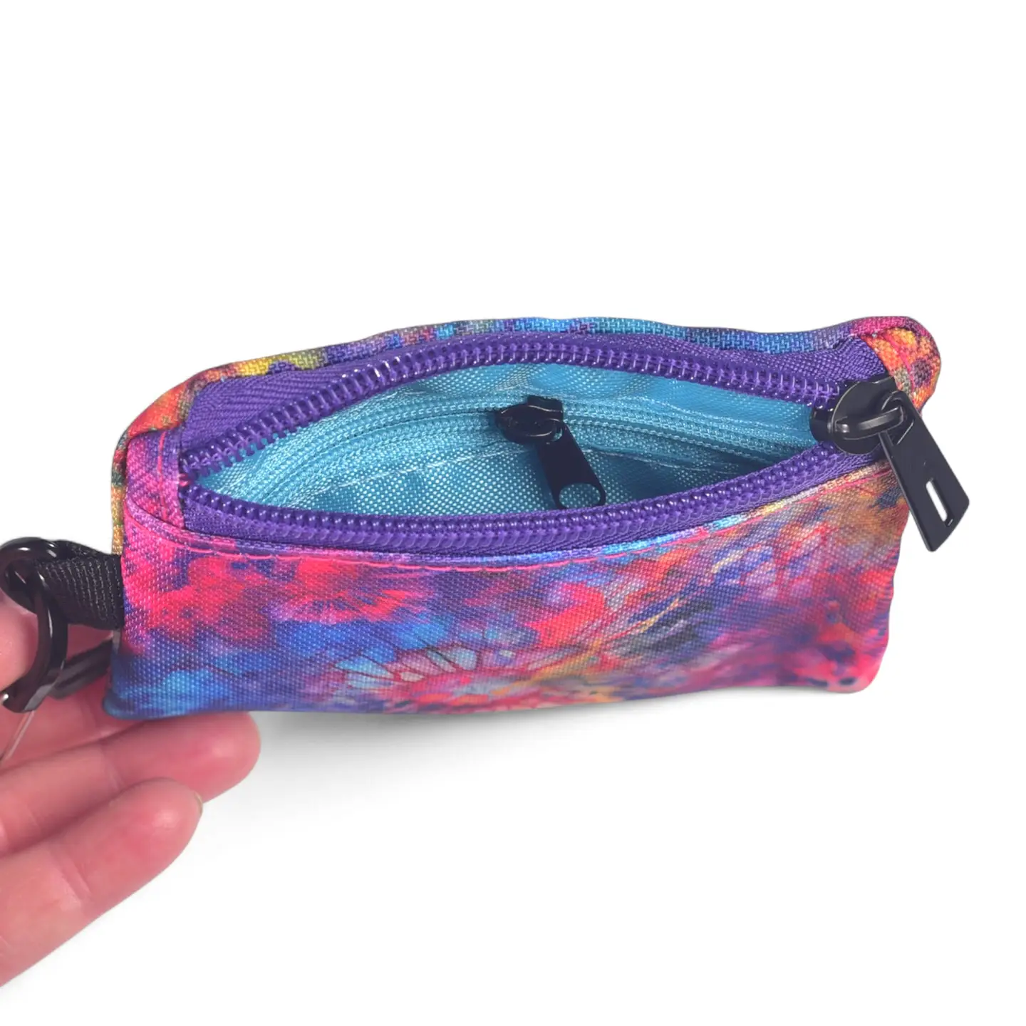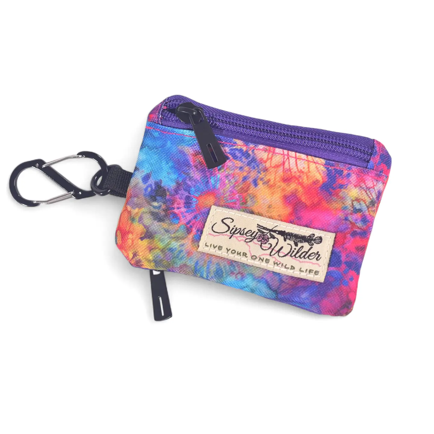 This two-sided little wallet is just what you need to keep it light and carefree. Two zipper pockets on opposite sides to hold your change, cards or keys. There is also a small zipper pocket on the inside. The included S-Biner clip will make for quick clipping to a bag or your belt loop. Easily slips in your back or front pocket for fast access.