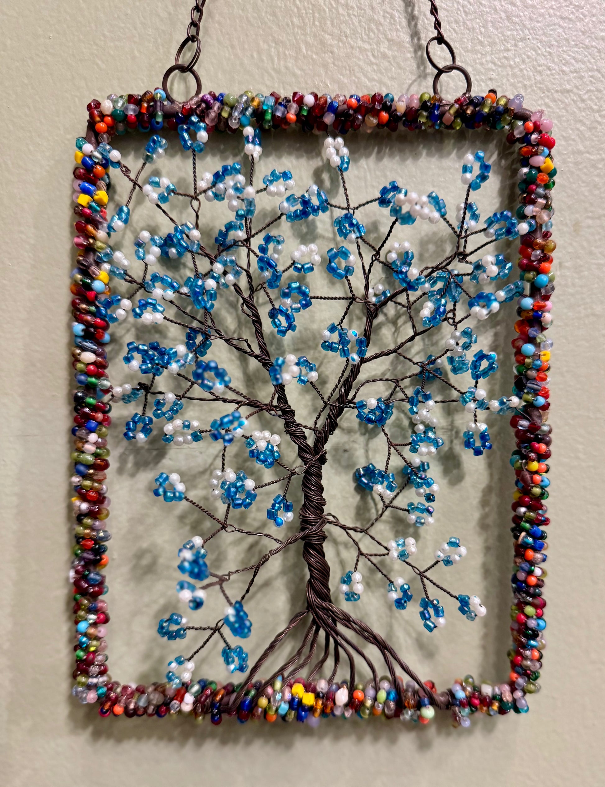 Wire Rectangle Tree Turq-8" Turq/pearl