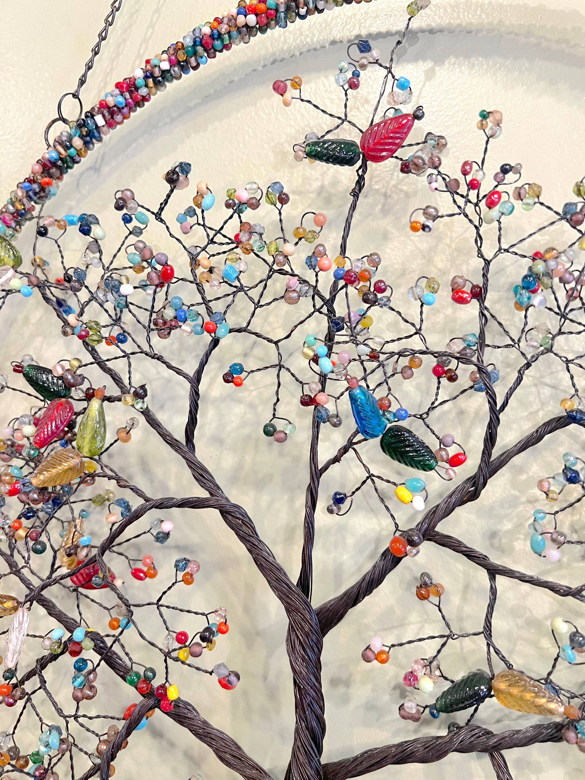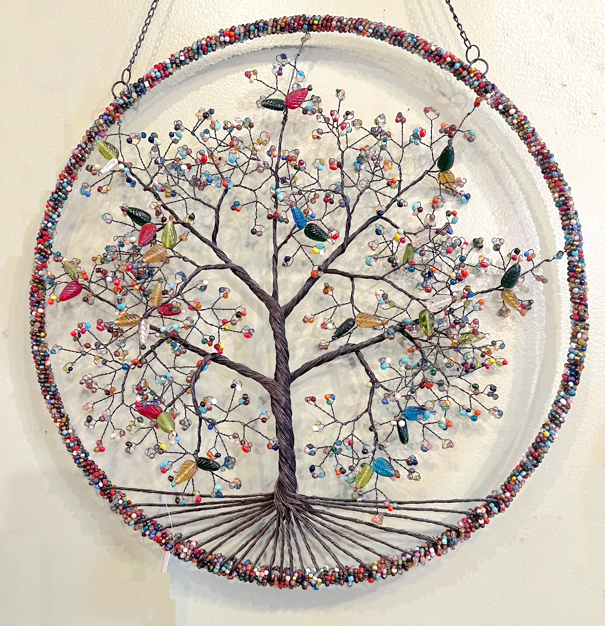 Wire Tree of Life Leaf Shaped Beads Multi 18"