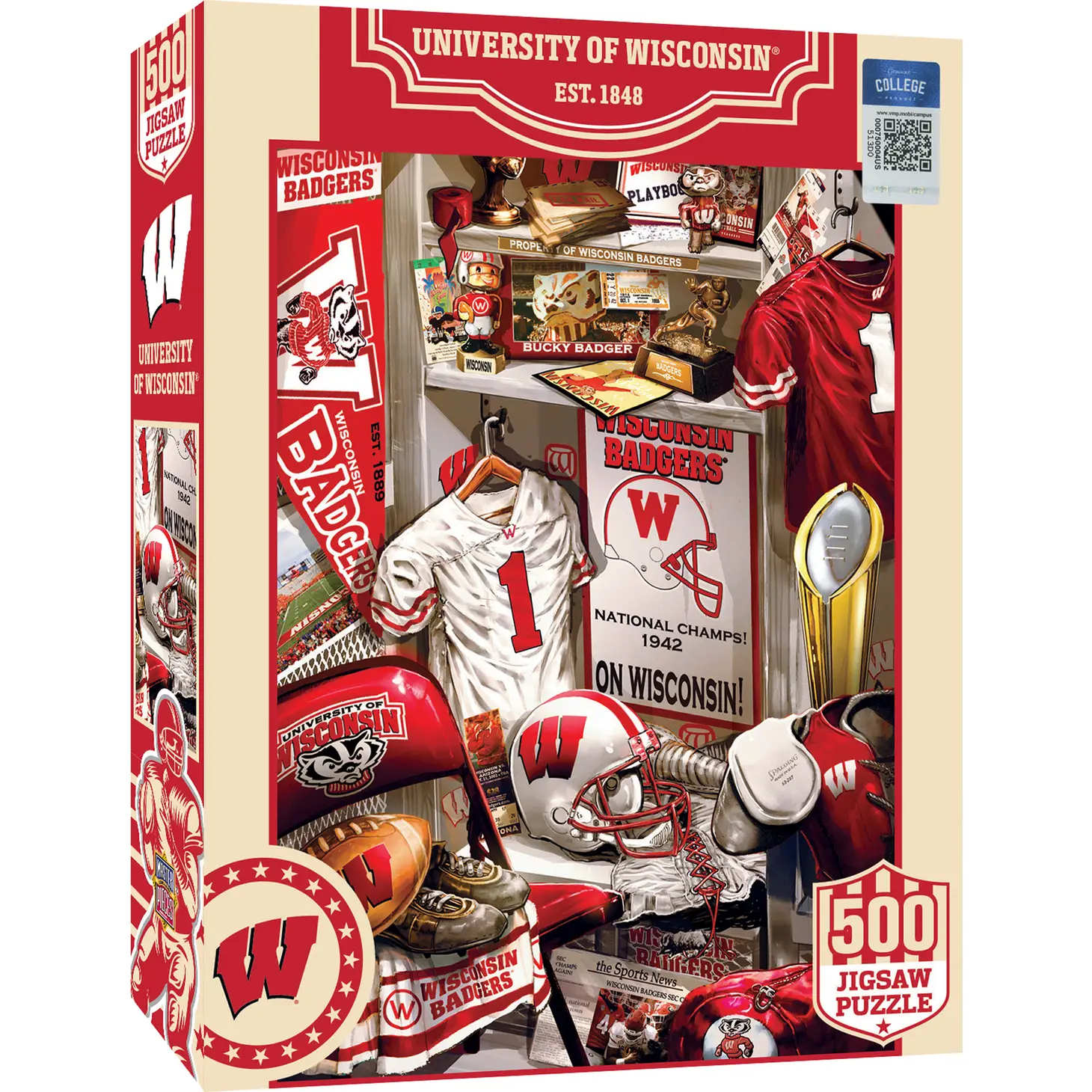 Take a nostalgic walk back through Wisconsin® football history with original art that masterfully showcases memorabilia from years past. You can almost see the waves of fans and hear their cheers. In addition to the iconic jerseys and helmet, several noteworthy pieces of Badgers™ football history are featured in this unique puzzle. To reduce its impact on our environment, the chipboard used in this puzzle is made of recycled material.