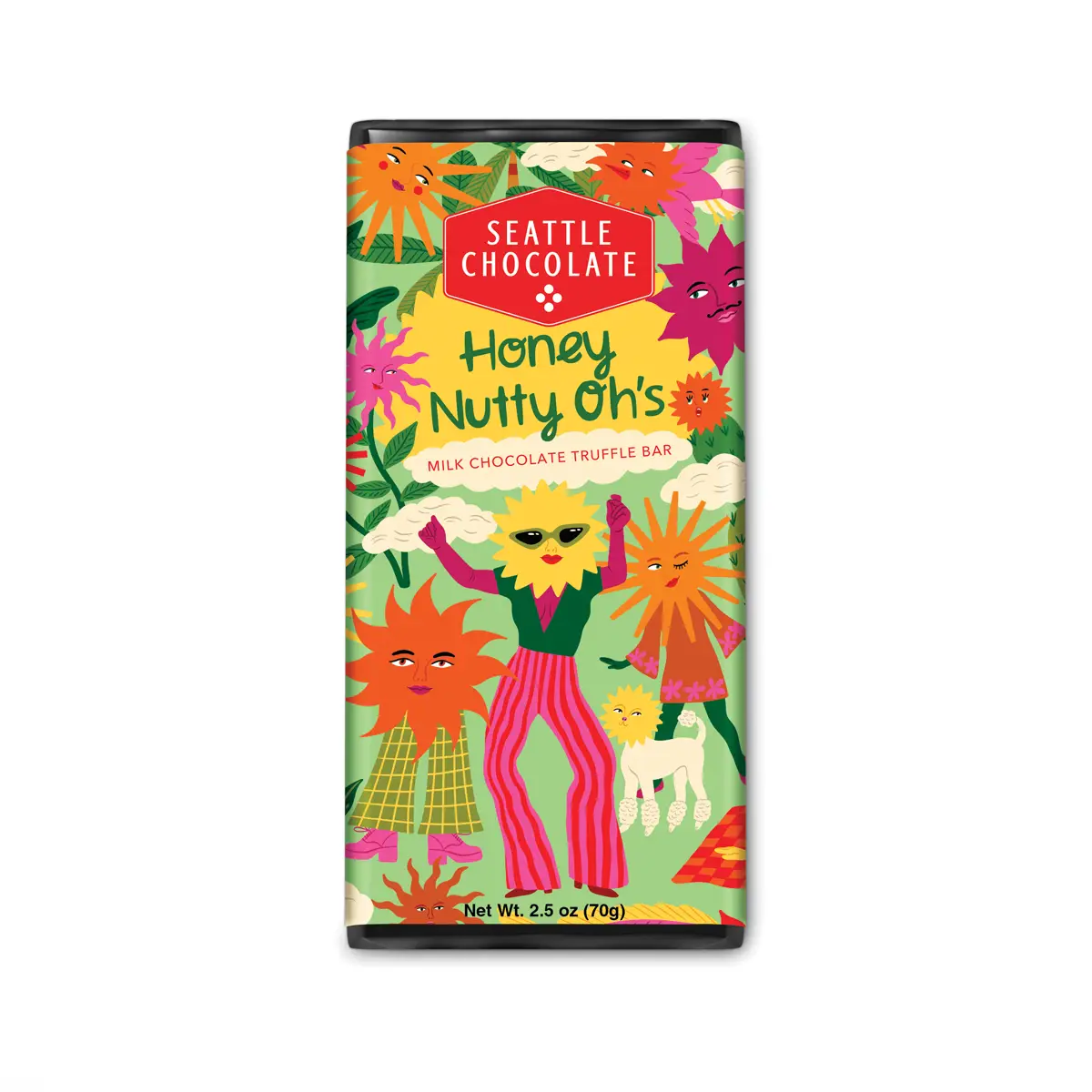 This honey nut cereal bar is designed to inspire random acts of chocolate, to keep for yourself or gift to someone who shines a little light on your day. A blend of granulated honey crystals, blackberry blossom honey, and organic honey nut cereal is swirled in milk chocolate with a pinch of Himalayan sea salt for a bar certain to elevate happiness all around.