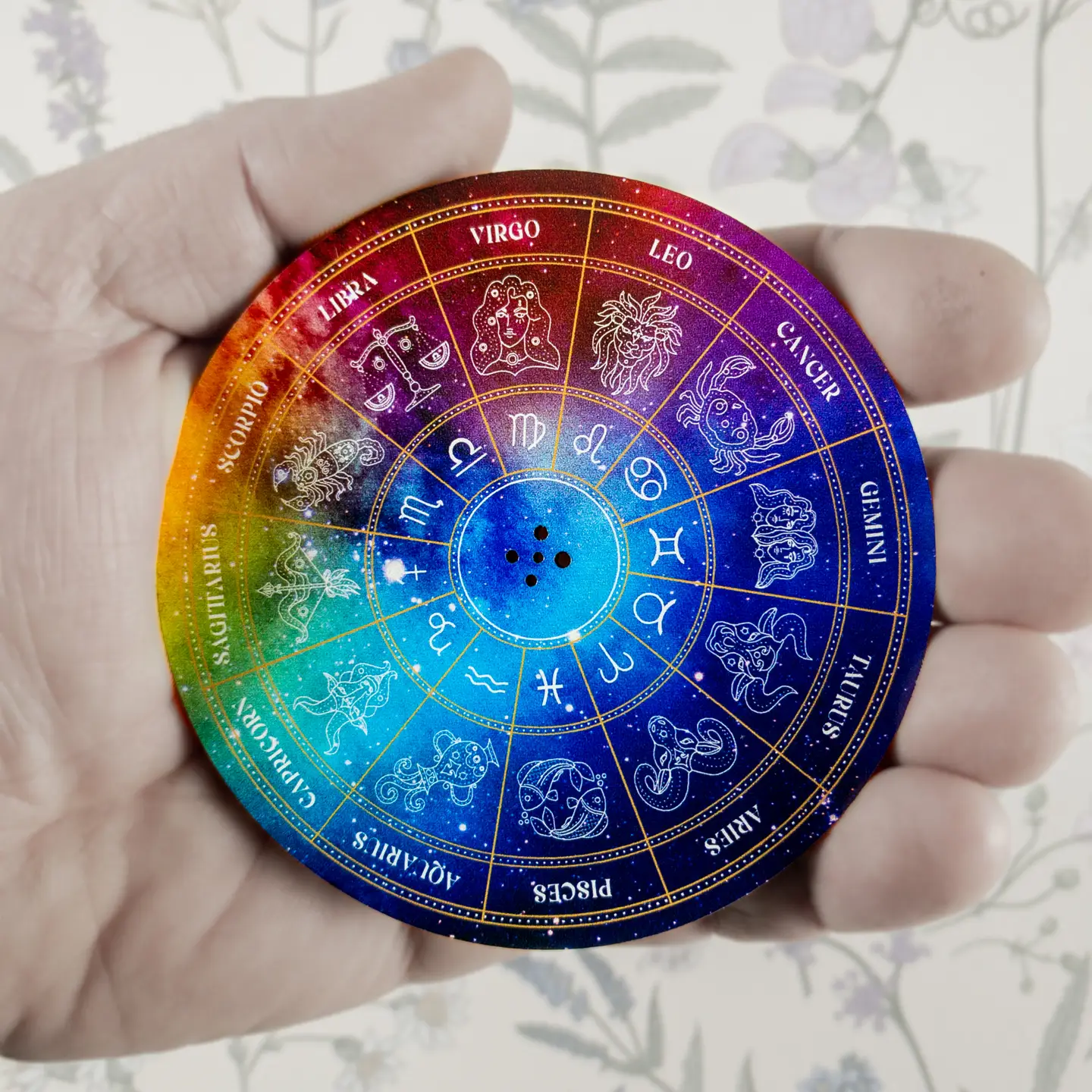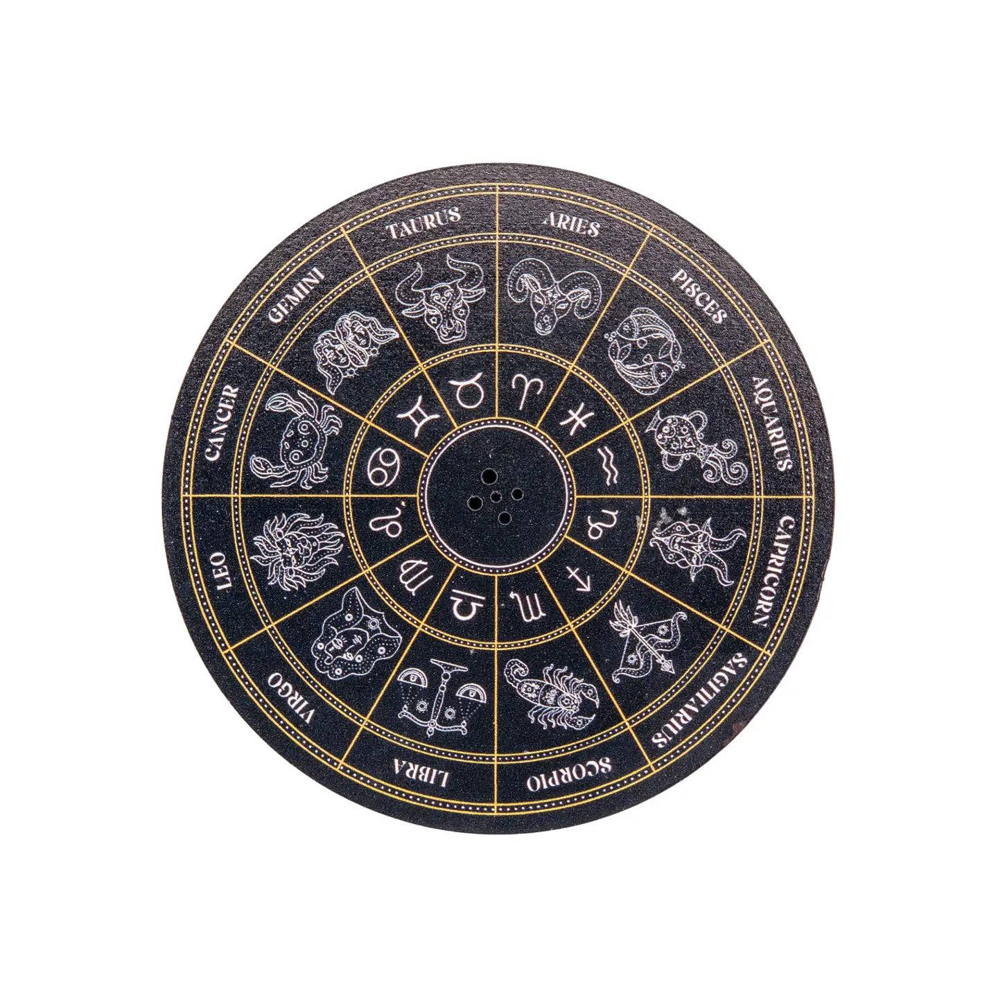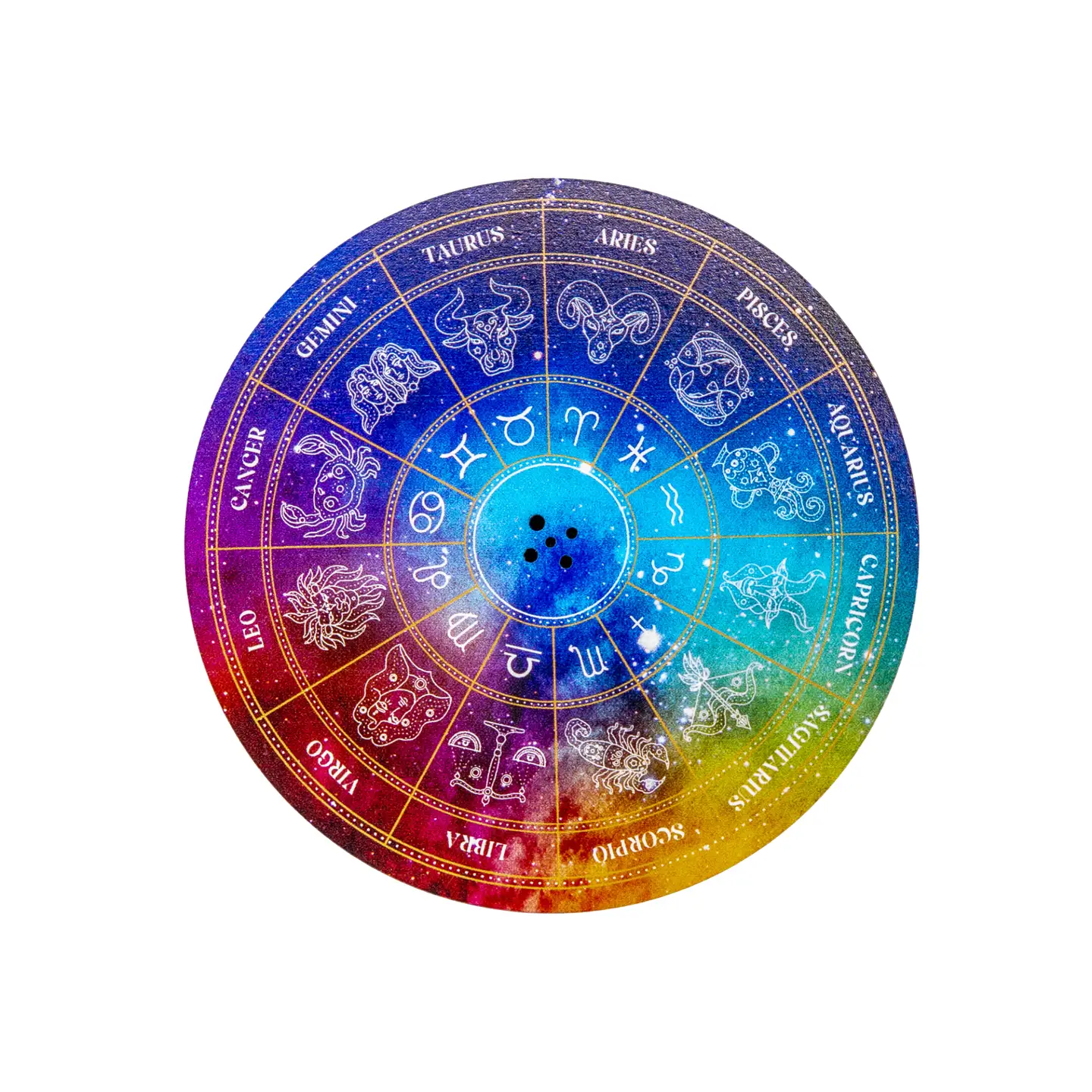 3.8" in diameter. Each holder has 5 different size holes for different size incense sticks, the holders are made of Laser cut and printed MDF which gives it its vibrant colors and comes in many designs.